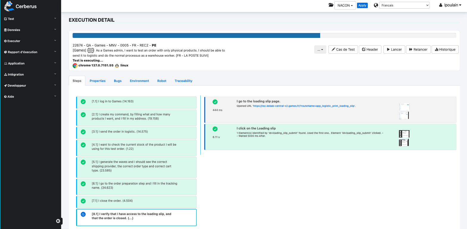 Afin de garantir la qualité du service applicatif, j'ai réalisé des tests techniques. Ces tests m'ont permis de vérifier le bon fonctionnement de l'application et vérifier si elle était pleinement opérationnelle après les différentes interventions réalisées précédemment.